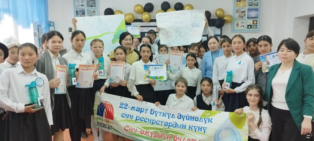 - Таласский район, с. Кок-Ой, сш им К. Момункулова, были проведены конкурсы рисунков среди школьников, спортивное мероприятие, лекция с показом видеороликов к Всемирному дню водных ресурсов среди школьников.